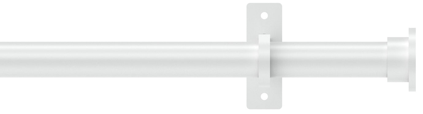 Arc 25mm Eyelet Metal Curtain Pole in China White with a Disc finial. The Arc curtain pole range is a versatile painted metal curtain pole range that is available in an array of colours to suit many modern and traditional interiors.