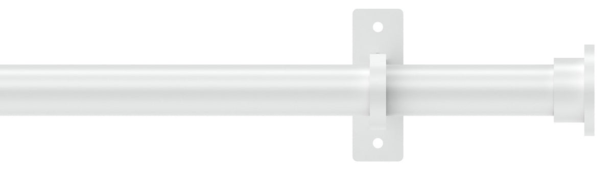 Arc 25mm Eyelet Metal Curtain Pole in China White with a Disc finial. The Arc curtain pole range is a versatile painted metal curtain pole range that is available in an array of colours to suit many modern and traditional interiors.