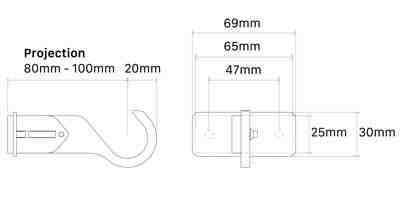 Arc 25mm Metal Adjustable Centre Bracket in Gun Metal for use with the Hallis Arc range of curtain poles. This new bracket makes fitting even easier whilst offering an adjustable projection from 80mm-100mm.