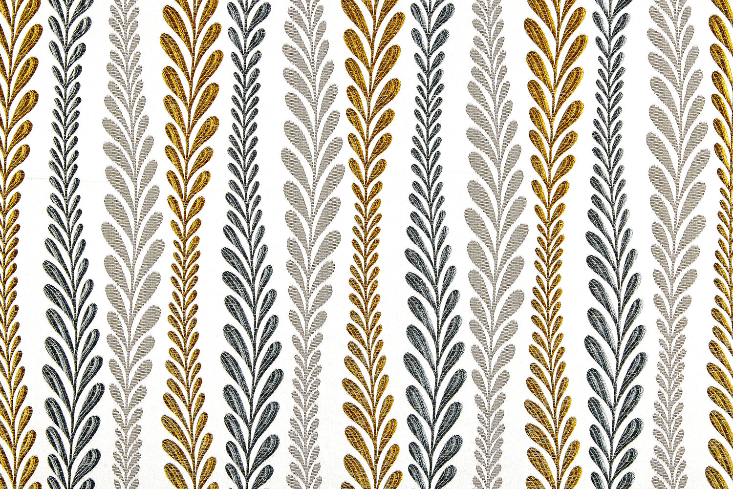 Bill Beaumont Textiles Norway Olaf fabric in Chartreuse colourway. Olaf is an abstract leaf stripe design.