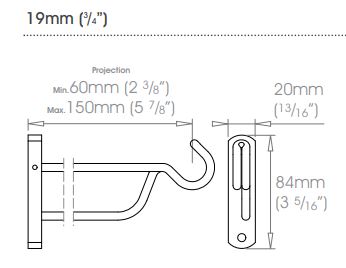 Bradley 19mm Steel Extended End Bracket, available in all colour finishes. Technically excellent, while individually forged by hand from solid wire, Steel brackets represent all that is best about the hand making tradition. As load-bearing side brackets, this style has a vertical back plate which gives mechanical advantage versus the sheer forces of heavyweight curtains, while the brackets are forged in steel and welded for maximum strength.