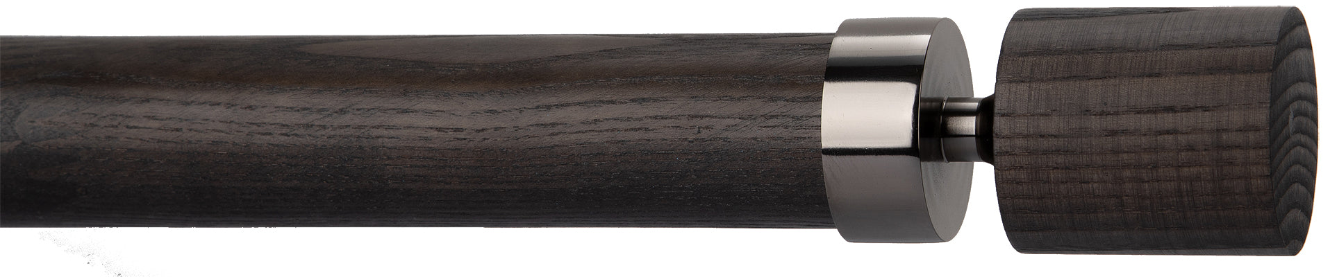 Byron Swift Delano 35mm & 45mm Wooden Curtain Pole in Umber with Top Hat Black Nickel finials