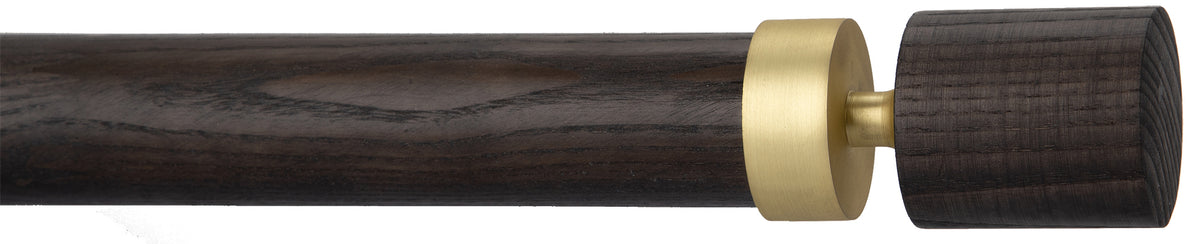 Byron Swift Delano 35mm & 45mm Wooden Curtain Pole in Umber with Top Hat Satin Brass finials