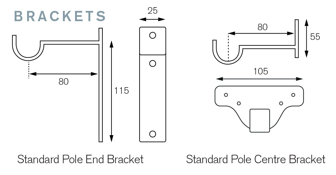 * Curtain poles of 3.0m and above are supplied in 2 pieces with an extra bracket.