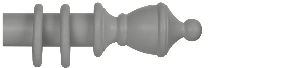 Cameron Fuller 35mm Wooden Curtain Pole in Slate with Vase finials. The wood pole collection is a stunning range of curtain poles lovingly made and hand-finished by Cameron Fuller. The finials and colour finishes have been designed to suit an array of interiors, from the French Farmhouse Kitchen to an English Country Cottage, along with modern and contemporary themes.