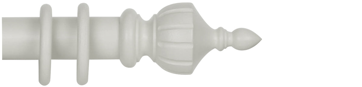 Cameron Fuller 50mm Wooden Curtain Pole in Oyster finish with Crown finials. The wood pole collection is a stunning range of curtain poles lovingly made and hand-finished by Cameron Fuller. The finials and colour finishes have been designed to suit an array of interiors, from the French Farmhouse Kitchen to an English Country Cottage, along with modern and contemporary themes.