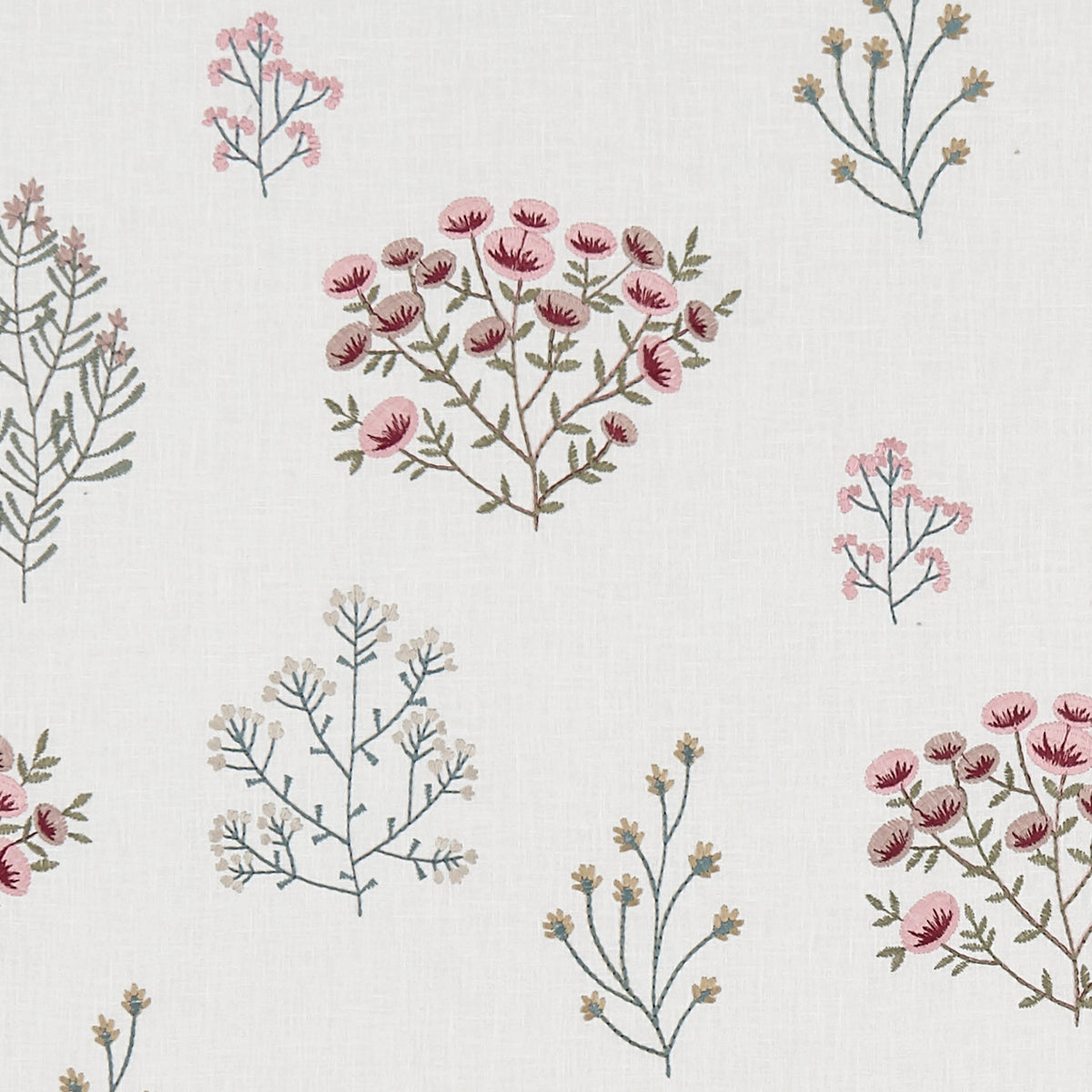 Clarke & Clarke Botanist Floris Summer Fabric. Floris is an embroidered fabric with a jacquard leaf silhouettes.