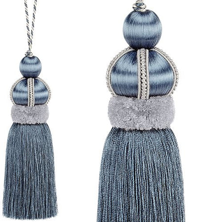 Hallis Antoinette Key Tassel in Slate Blue. Antoinette revisits the grandeur of the past and the splendour of palaces such as Versailles, to create a royal collection with a contemporary take on classic elegance.