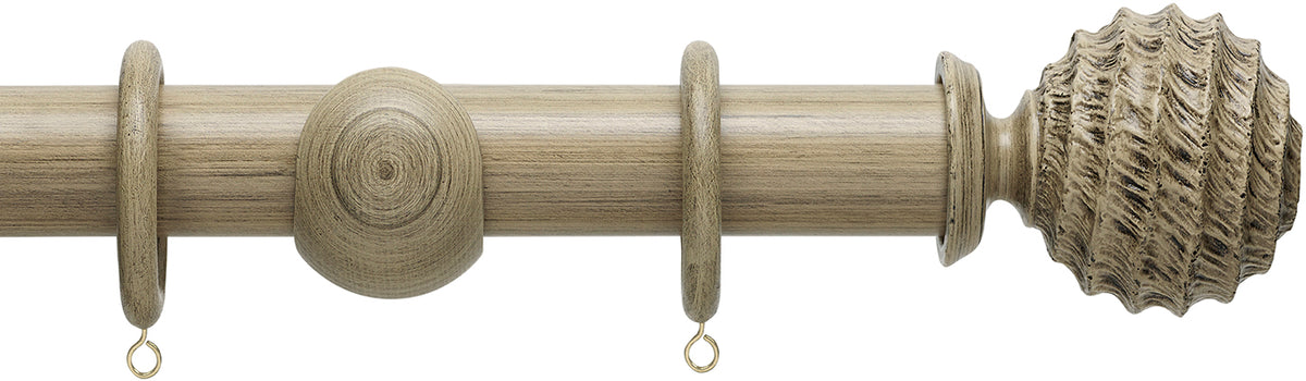 Origins Wood Curtain Pole, Quarry Stone, Fossil Ball Finial