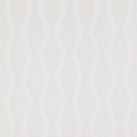 Harlequin Purity Edit Chime Silver Fabric. This embroidered fabric features an ornate curved design embellished with sequins and a thick woven yarn.