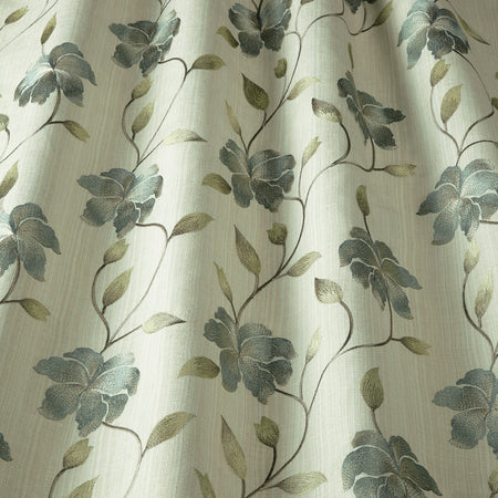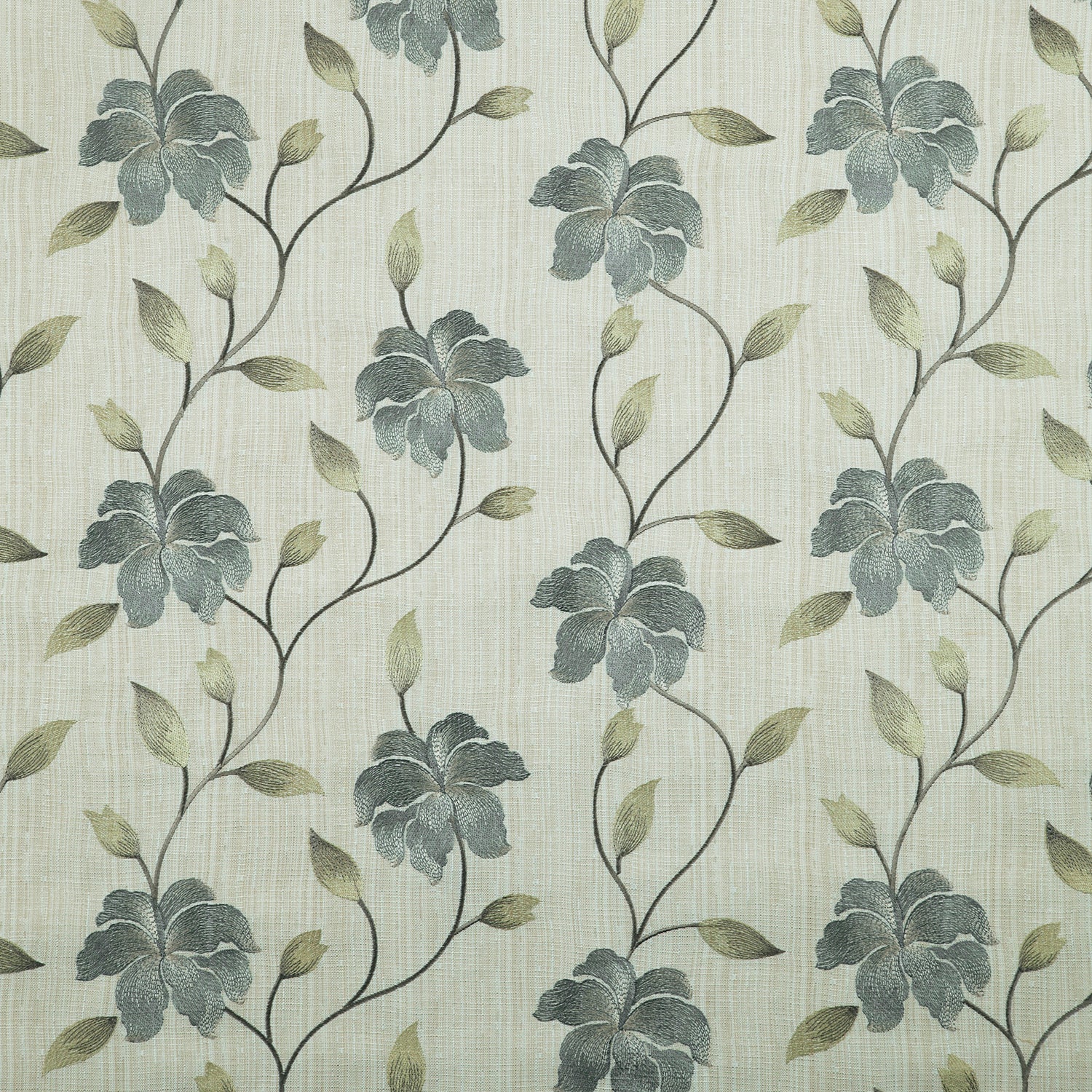 Iliv Art Deco Everglade Fabric in Cornflower Colourway. Everglade is an embroidered fabric with a floral trail design.