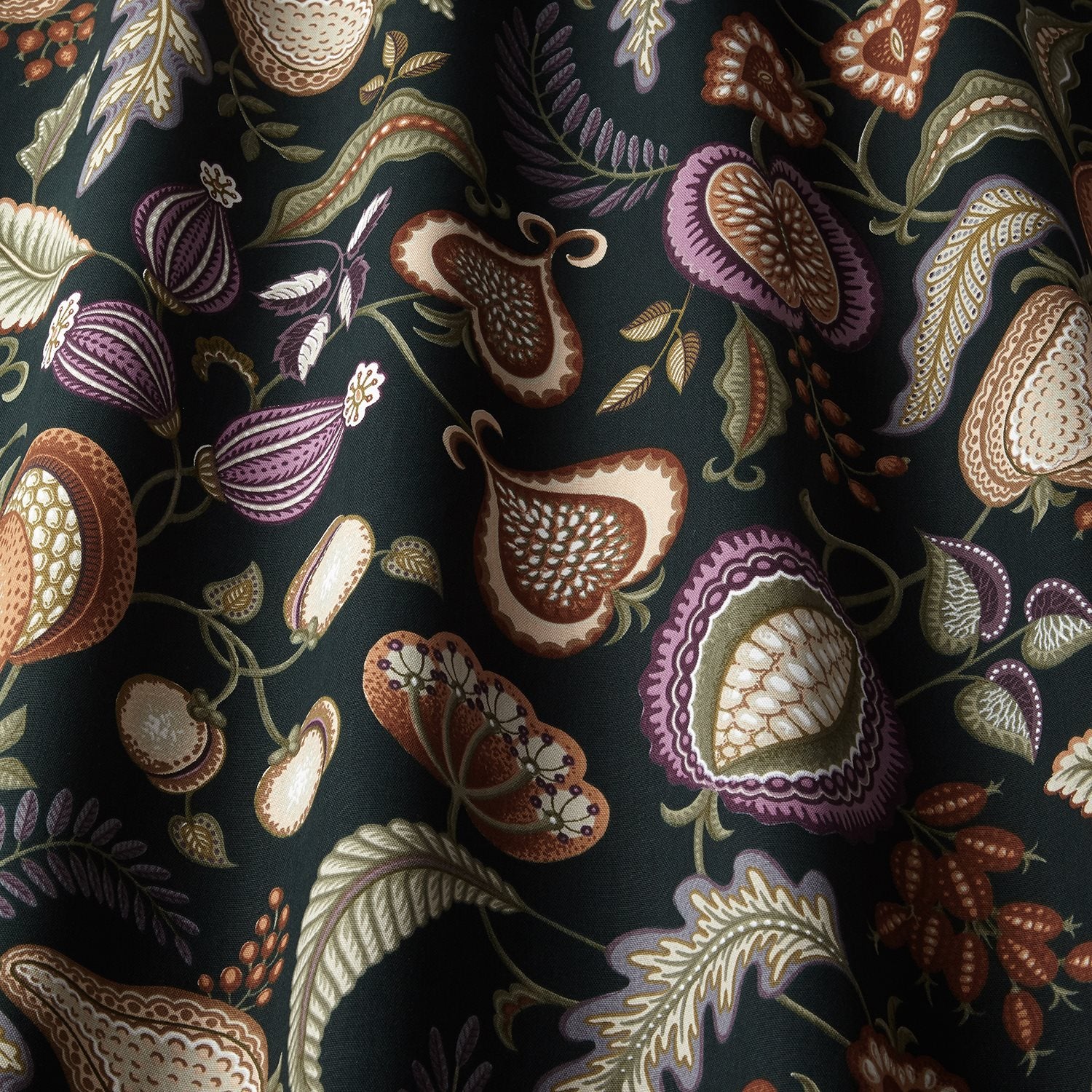 Iliv Interior Textiles Arts and Crafts Appleby fabric in Eden colourway. Harvest is a printed cotton fabric with a bold leaf and fruit design. Arts and Crafts is a beautiful collection of natural motifs in bold colourways.