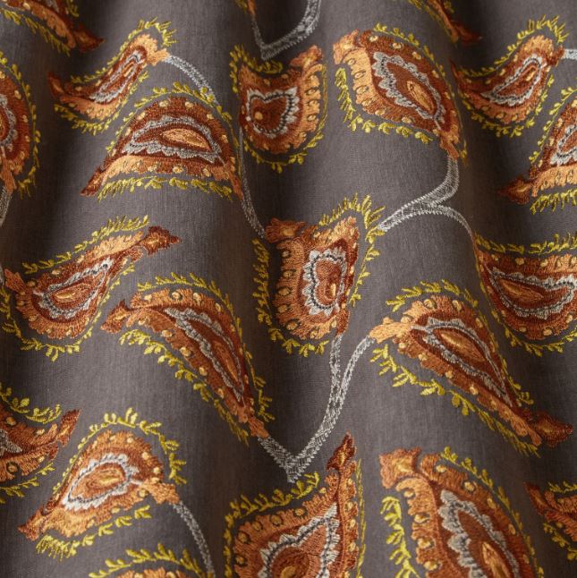 Iliv Chalet Sestriere Spice Fabric. Sestriere is an embroidered fabric with a leafy trail design.