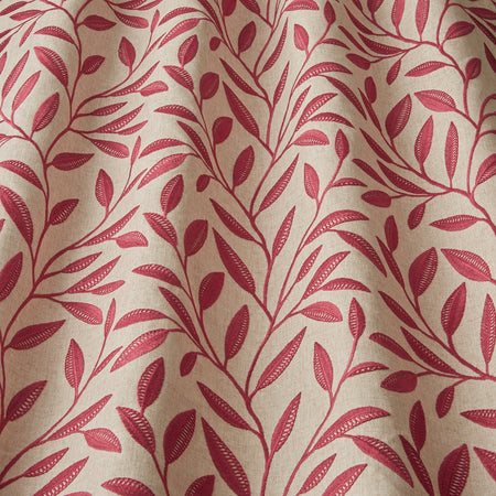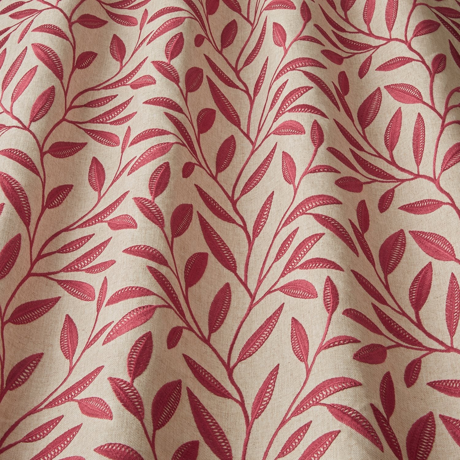 Iliv Interior Textiles Whitwell fabric in Carmine colourway. Whitwell is an Embroidered fabric with a delicate leaf design. Chalfont is a mixture of bold patterns and hues inspired by the great outdoors. Perfect for any home with traditional tastes.