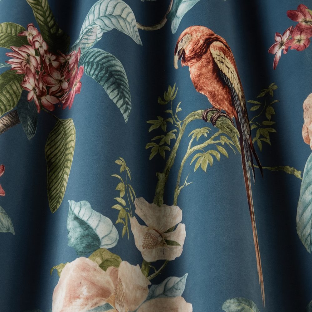 Iliv Enchanted Garden Lagoon Fabric. Enchanted Garden is a velvet fabric with a floral and bird design.