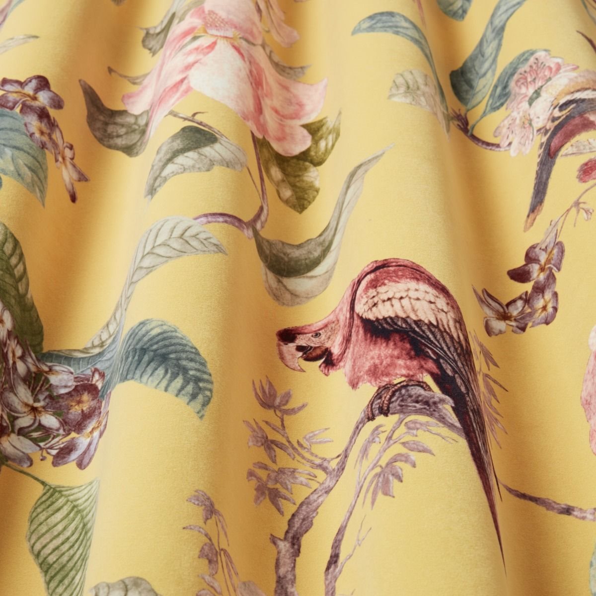 Iliv Enchanted Garden Pampas Fabric. Enchanted Garden is a velvet fabric with a floral and bird design.