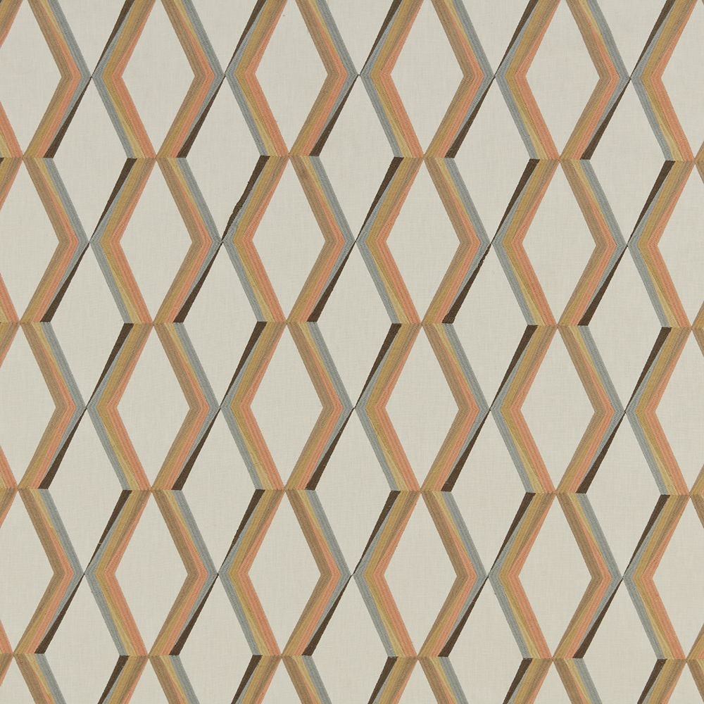 Iliv Geometrica Paragon Mandarin Fabric. Paragon is an embroidered fabric with a geometric design.