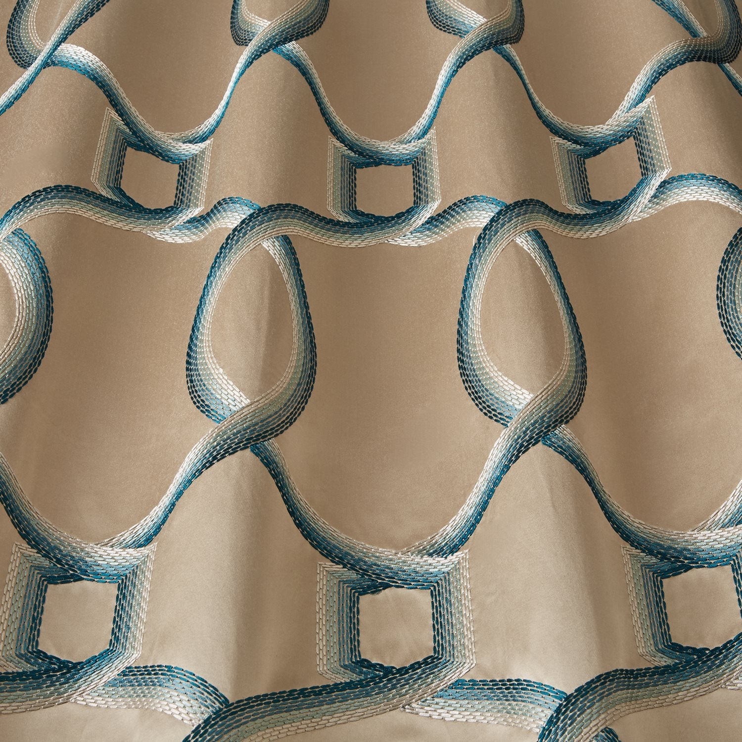Iliv Interior Textiles Athena fabric in Teal colourway. Athena is an embroidered fabric with a bold geometric design. The Isadore is Timeless and Elegant, Boasting Rich, Opulent designs in six luxurious colourways.
