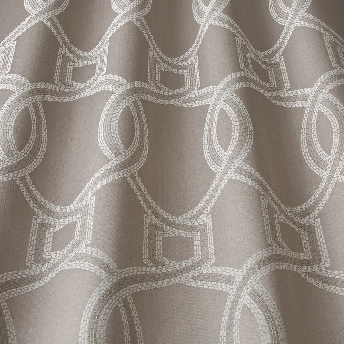 Iliv Interior Textiles Colonnade fabric in Ash Grey colourway. Colonnade is a woven fabric with a stunning geometric design. The Isadore is Timeless and Elegant, Boasting Rich, Opulent designs in six luxurious colourways.