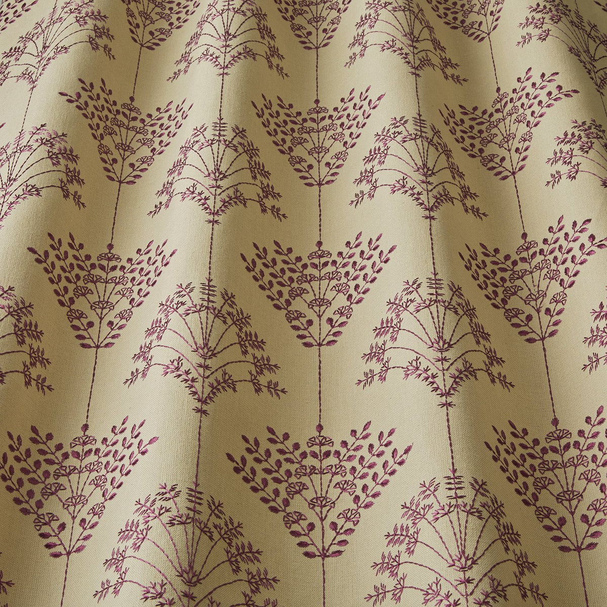 Iliv Interior Textiles Thalia fabric in Amethyst colourway. Thalia is an embroidered fabric with a delicate design. The Isadore is Timeless and Elegant, Boasting Rich, Opulent designs in six luxurious colourways.