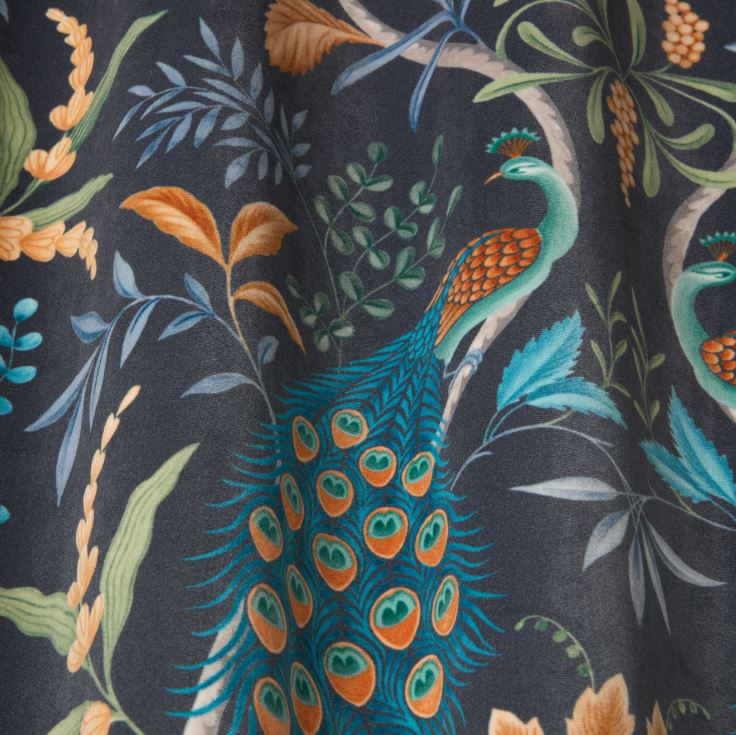 Iliv Jardine Parvani Twilight Fabric. Parvani is a printed velvet fabric with a peacock design.