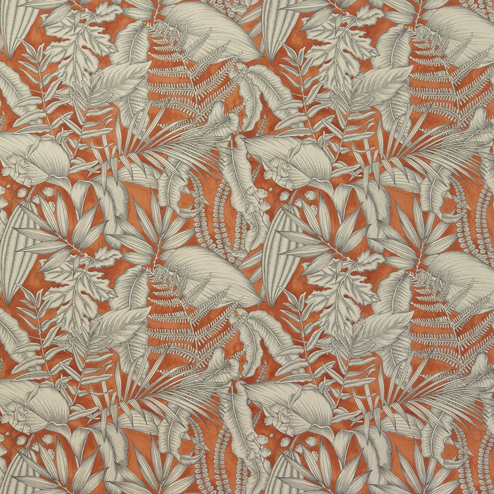 ILIV Maldives, Caicos Fabric in Mandarin Colourway. Caicos is a printed cotton fabric with a woodland forest design. Vibrant prints are teamed with contemporary leaf designs. Detailed embroideries and textural velvets are also available in this collection.