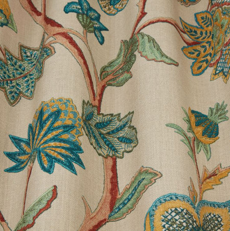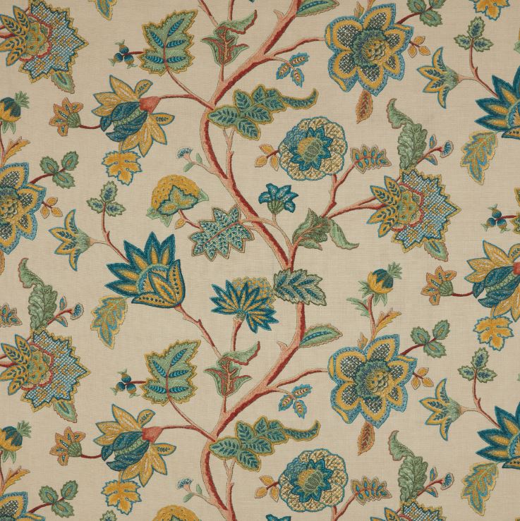 ILIV Orissa Chanderi Malachite Fabric. Chanderi is a printed fabric with a floral design.