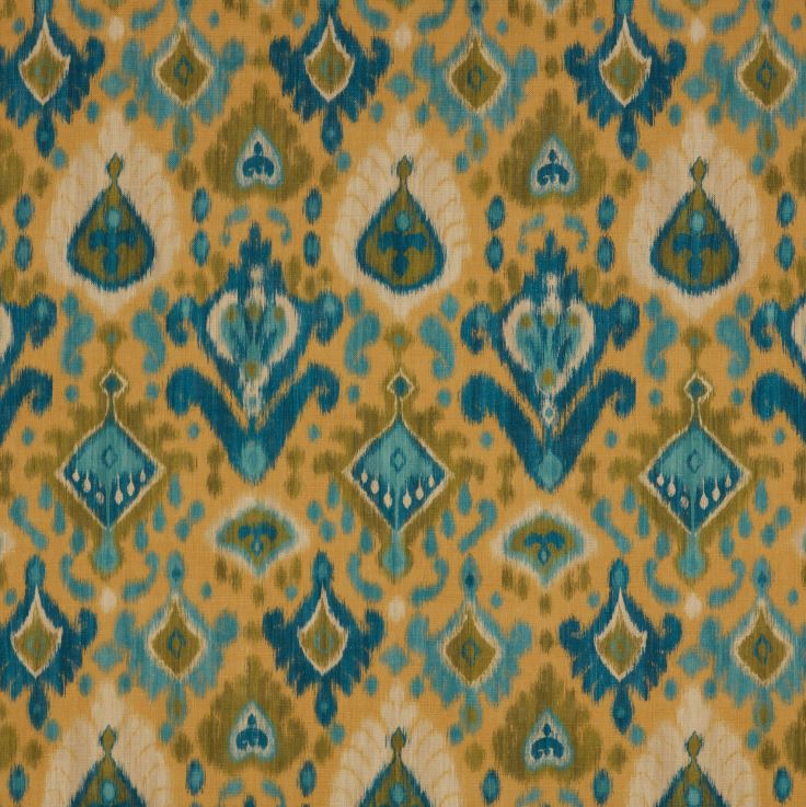 ILIV Orissa Mandu Ochre Fabric. Mandu is a printed fabric with an ikat design.