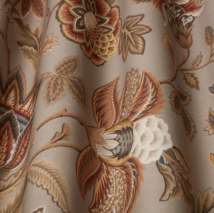 ILIV Orissa Sarita Oatmeal Fabric. Sarita is a printed fabric with a floral design.
