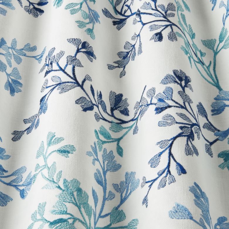 ILIV Rewilding Willowbrook Cornflower Fabric. Willowbrook is an embroidered fabric with a floral design.