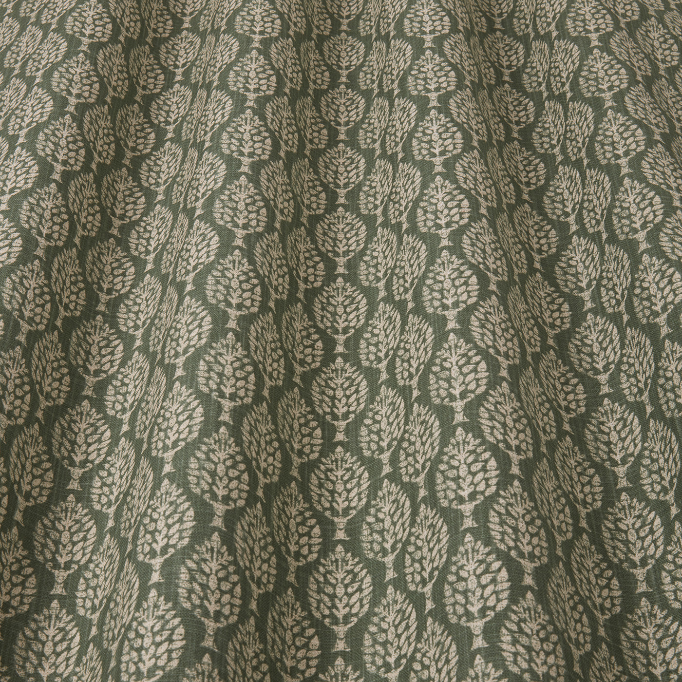 ILIV Silk Road Kemble Spruce Fabric. Kemble is a printed fabric with a leaf design.