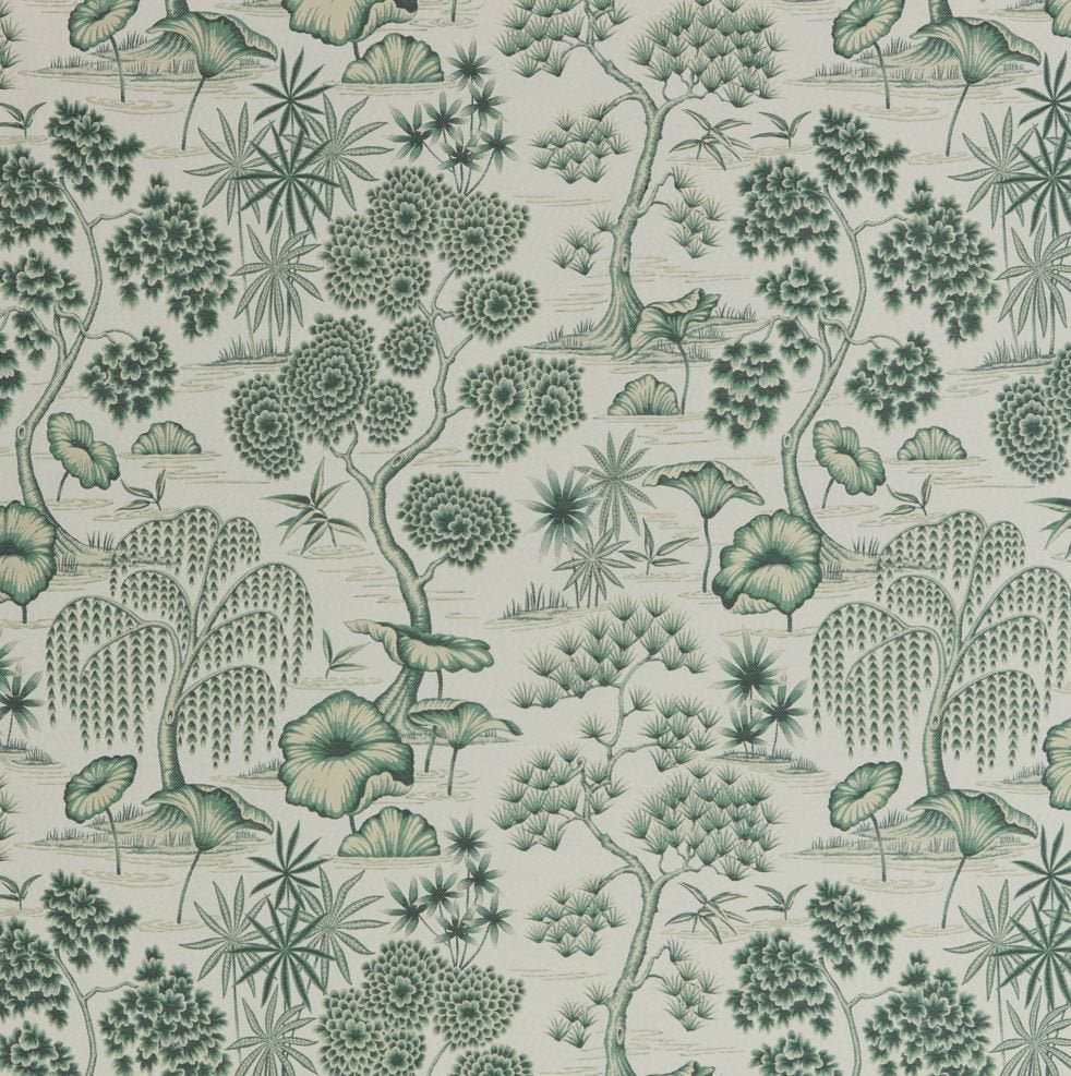 ILIV Siyuri Porcelaine Evergreen Fabric. Porcelaine is a woven fabric with a tree design.