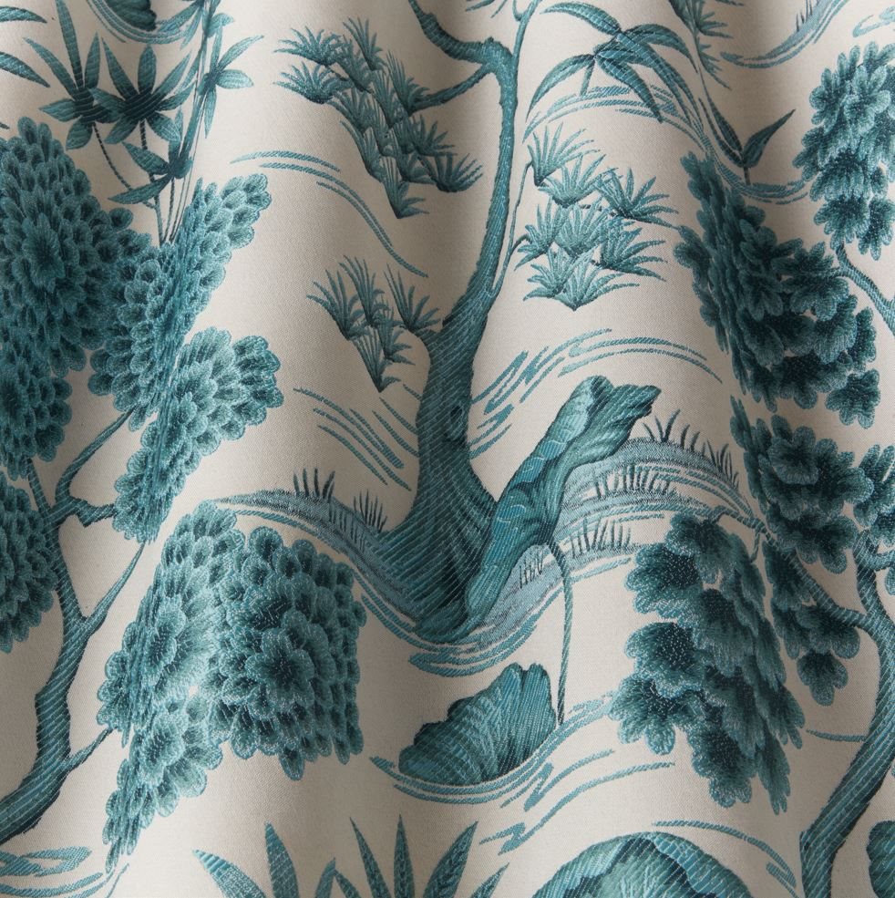ILIV Siyuri Porcelaine Lapis Fabric. Porcelaine is a woven fabric with a tree design.