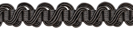 Jones Baroque Trimming in Graphite. A decorative gimp braid with a scroll embellishment that├óÔé¼Ôäós ideal for adding interest to upholstery, cushions, blinds and lampshades. This gimp braid is highly flexible, making it ideal for trimming around tight corners and light enough to add embellishment to the bottom of roller blinds as well as other items. The colour spectrum features 18 beautiful shades that include neutrals, pastels and vivid pops of colour to compliment many fabrics.