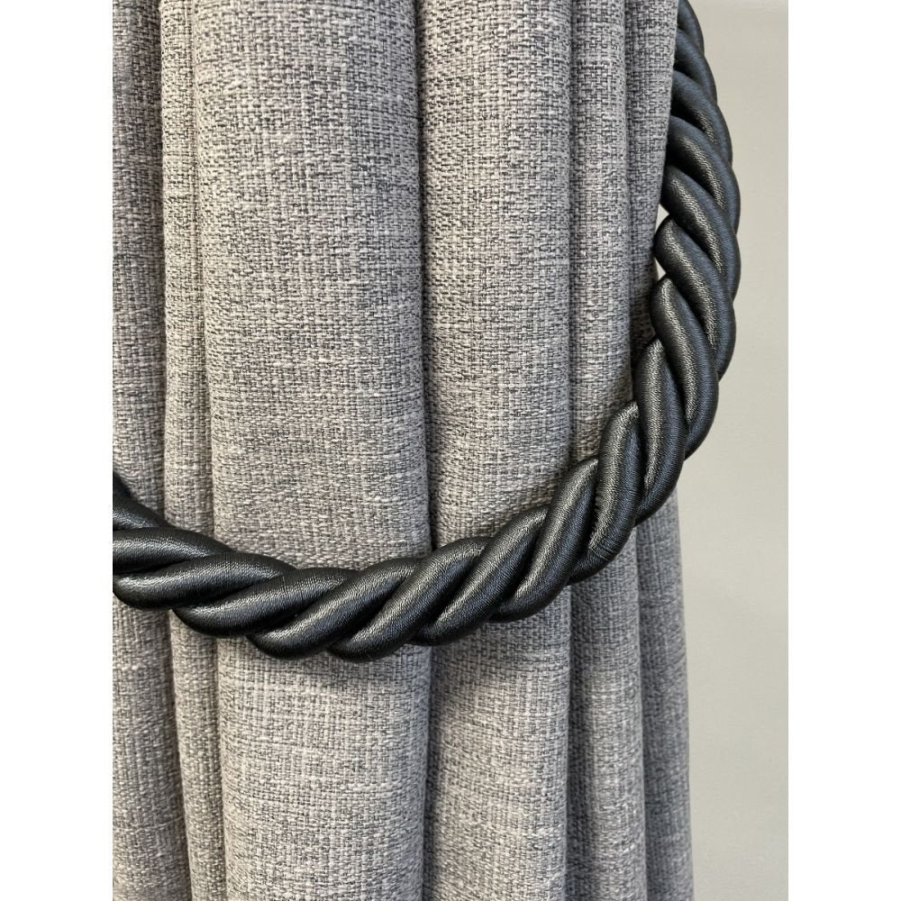 Jones Reef Rope Curtain Tieback in Charcoal. A simple, affordable 19mm diameter twisted rope tieback available in 15 exciting colour shades that will enhance your curtains. Twist more than one colour to create an individual look.