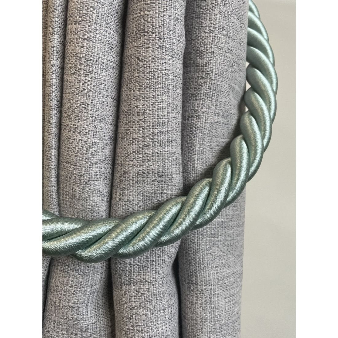Jones Reef Rope Curtain Tieback in Jade. A simple, affordable 19mm diameter twisted rope tieback available in 15 exciting colour shades that will enhance your curtains. Twist more than one colour to create an individual look.