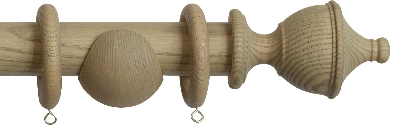 Laura Ashley 35mm Haywood Wood Curtain Pole in Washed Oak with Urn finials. Laura Ashley Haywood Curtain Poles are made from stunning Ash wood that's stained to unveil the natural beauty of the wood grain. These complete pole kits with stylish urn finials are sure to add a touch of sophistication to any room. To complete the look, style with Haywood holdbacks, available separately.