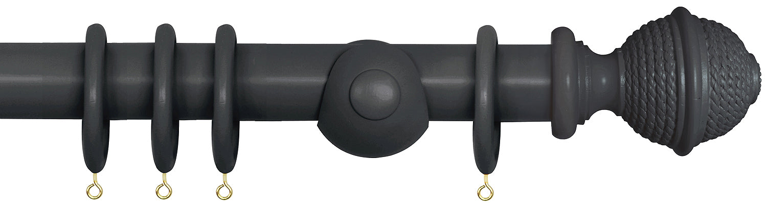 Laura Ashley 40mm Bespoke Handcrafted Wood Curtain Pole Charcoal Woven Rope