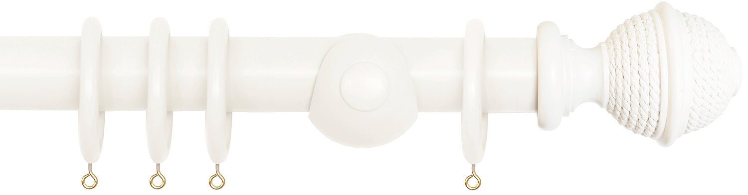 Laura Ashley 40mm Bespoke Handcrafted Wood Curtain Pole Cotton White Woven Rope