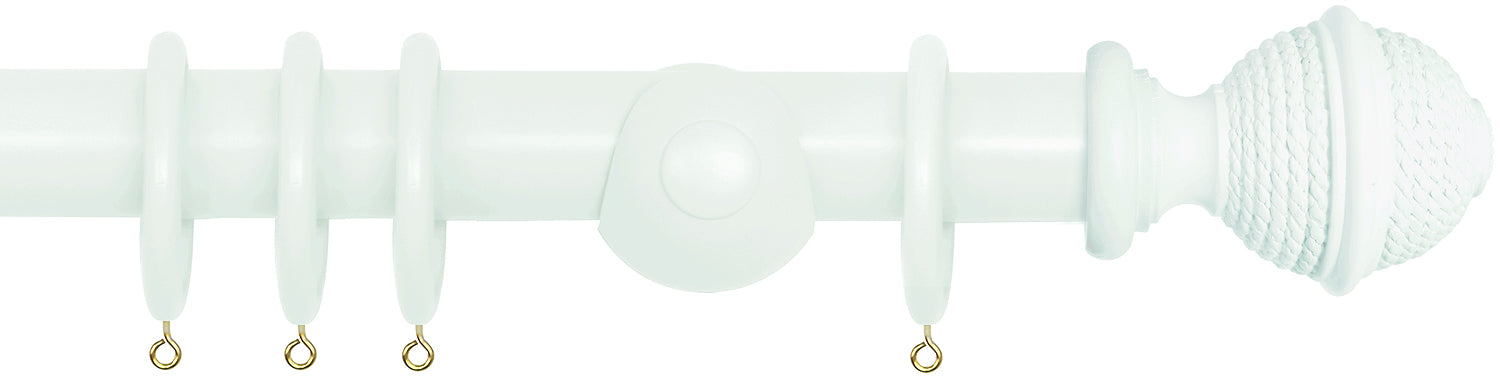Laura Ashley 40mm Bespoke Handcrafted Wood Curtain Pole Duck Egg White with Woven Rope finials in a bespoke paint finish. In the words of Laura Ashley, 'No two houses in the world are the same, because everyone likes to put things together in their own way' Inspired by Laura Ashley's eye catching floral prints the new Handcrafted Curtain Pole Duck Egg White is traditionally made in the UK and offers a stylish yet timeless look.