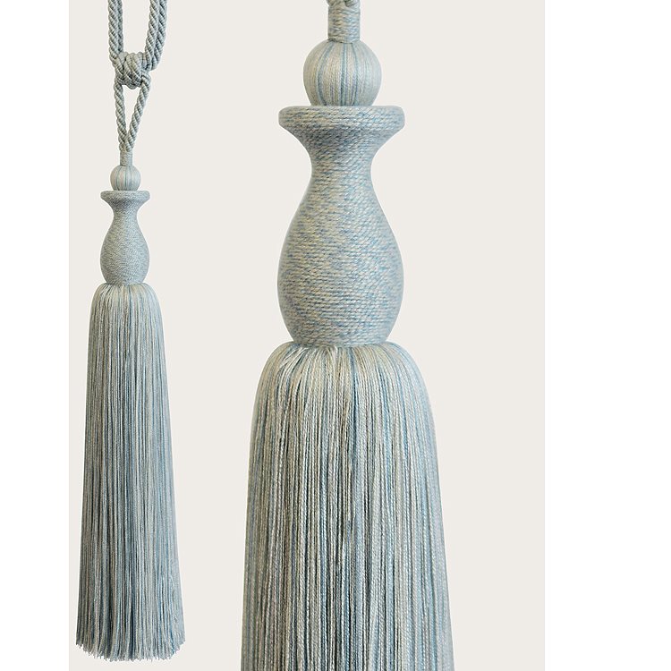 Laura Ashley Curtain Tieback in Eau de Nil. Laura Ashley Lucinda Tiebacks have a relaxed, matt finish that partners beautifully with cotton and linen curtains. These stunning tiebacks feature an elongated tassel and hourglass body in a delicate colour palette that complements many Laura Ashley fabrics.