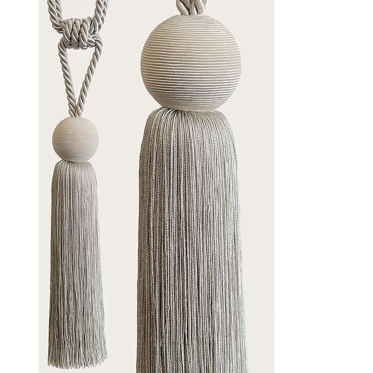 Laura Ashley Theodora Curtain Tieback in Dove Grey. A Laura Ashley classic tassel tieback with a sphere shape body and traditional twisted rope to complement many curtain styles. With a generous embrace, Theodora is ideal for fuller width curtains.
