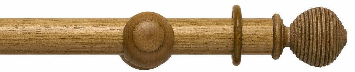Modern Country 45mm, 55mm Pole, Light Oak, Ribbed Ball Finial