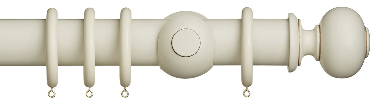 Museum 55mm wood curtain pole in an Antique White finish with a Parham Finial. Museum 35mm 45mm and 55mm Wood curtain pole collection is a Hand finished classic from Hallis Hudson. With elegance and style the Museum Range is a beautiful collection of handcrafted wooden curtain poles with an outstanding choice of traditional finishes and stunning finials.