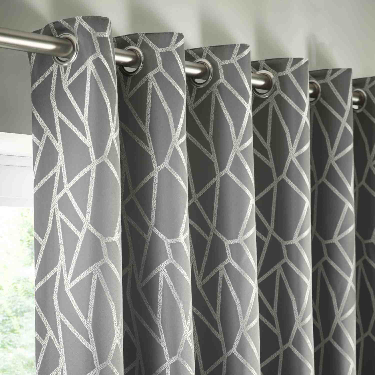 Studio G Como eyelet Curtains in Pewter colourway. Como Ready made Eyelet curtains are a luxurious woven geometric design with a eyelet heading that is supplied in various sizes and colours.