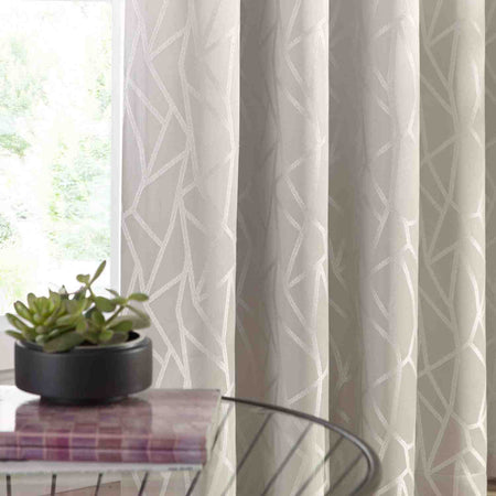 Studio G Como eyelet Curtains in Silver colourway. Como Ready made Eyelet curtains are a luxurious woven geometric design with a eyelet heading that is supplied in various sizes and colours.