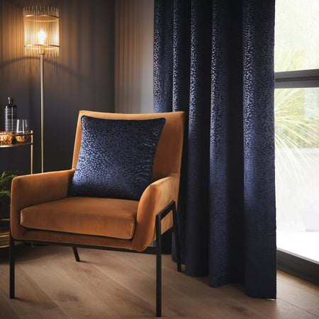 Studio G Vienna Eyelet Curtains Midnight. Vienna is a versatile semi plain velvet curtain with abstract emboss detail. The curtains have a cream polycotton lining and satin silver eyelets.