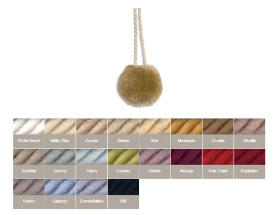 Troynorth Cosmos Astro Pom Pom Key Tassel The Pom Pom key tassel is available in 20 different colourways with a matt finish. From Subtle tones to vivid pinks there is something to suite all fabrics.