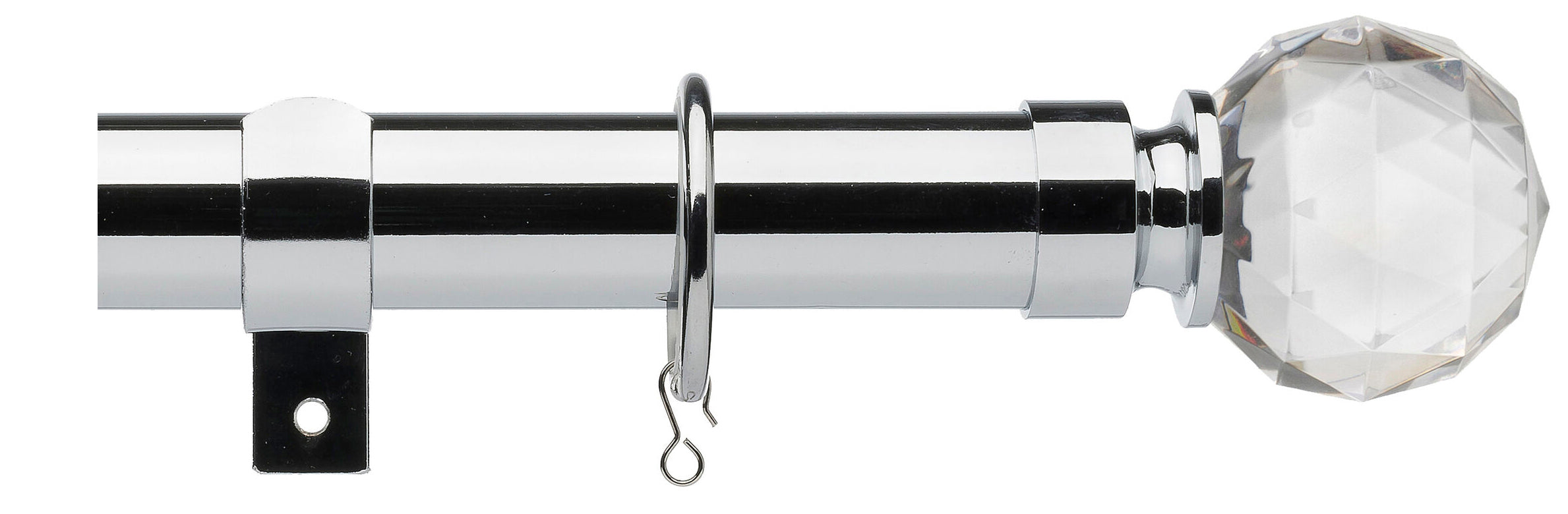 Universal 25/28mm Metal Extendable Curtain Pole, Chrome, Faceted Ball