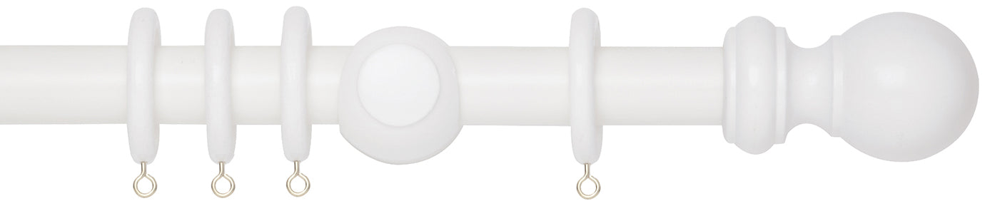 Rolls Woodline 28mm and 35mm Wood Curtain Pole in a White painted finish with traditional style finials.